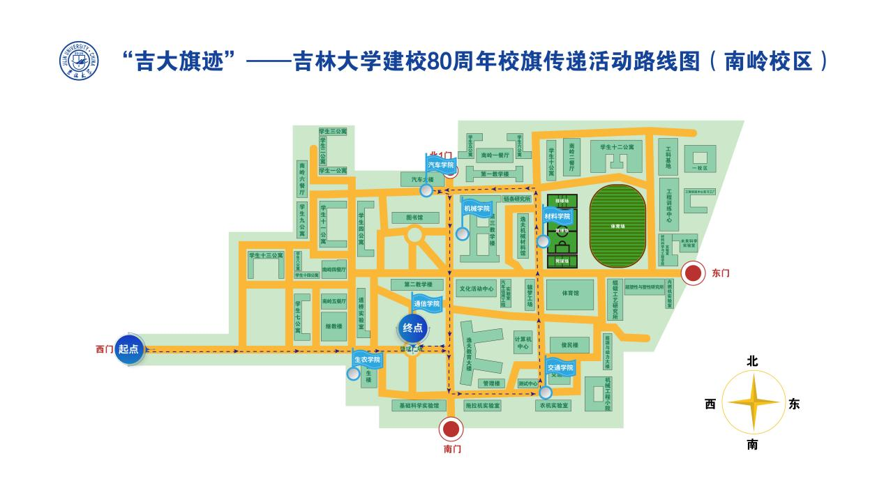 为迎接学校建校80周年,传承吉大精神,凝聚师生校友力量,营造浓厚校庆氛围,根据学校整体工作安排,南岭校区将开展“吉大旗迹”校旗传递活动,具体事宜通知如下: