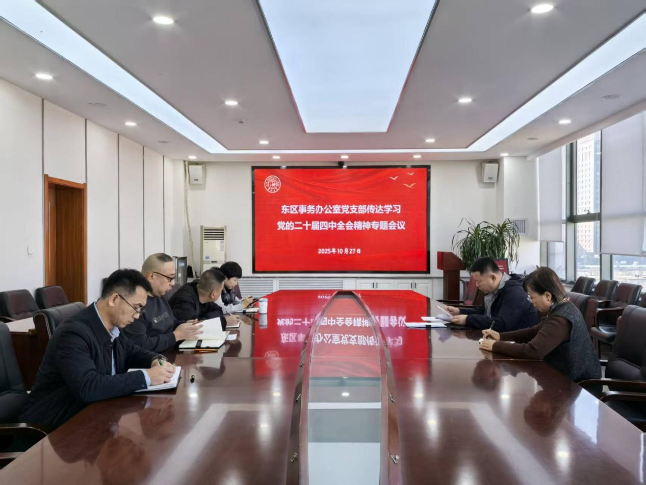 2025年10月27日,东区事务办公室党支部召开专题学习会议,集中传达学习贯彻党的二十届四中全会精神。会议由东区事务办公室党支部书记张长亮主持,全体党员参加会议。
