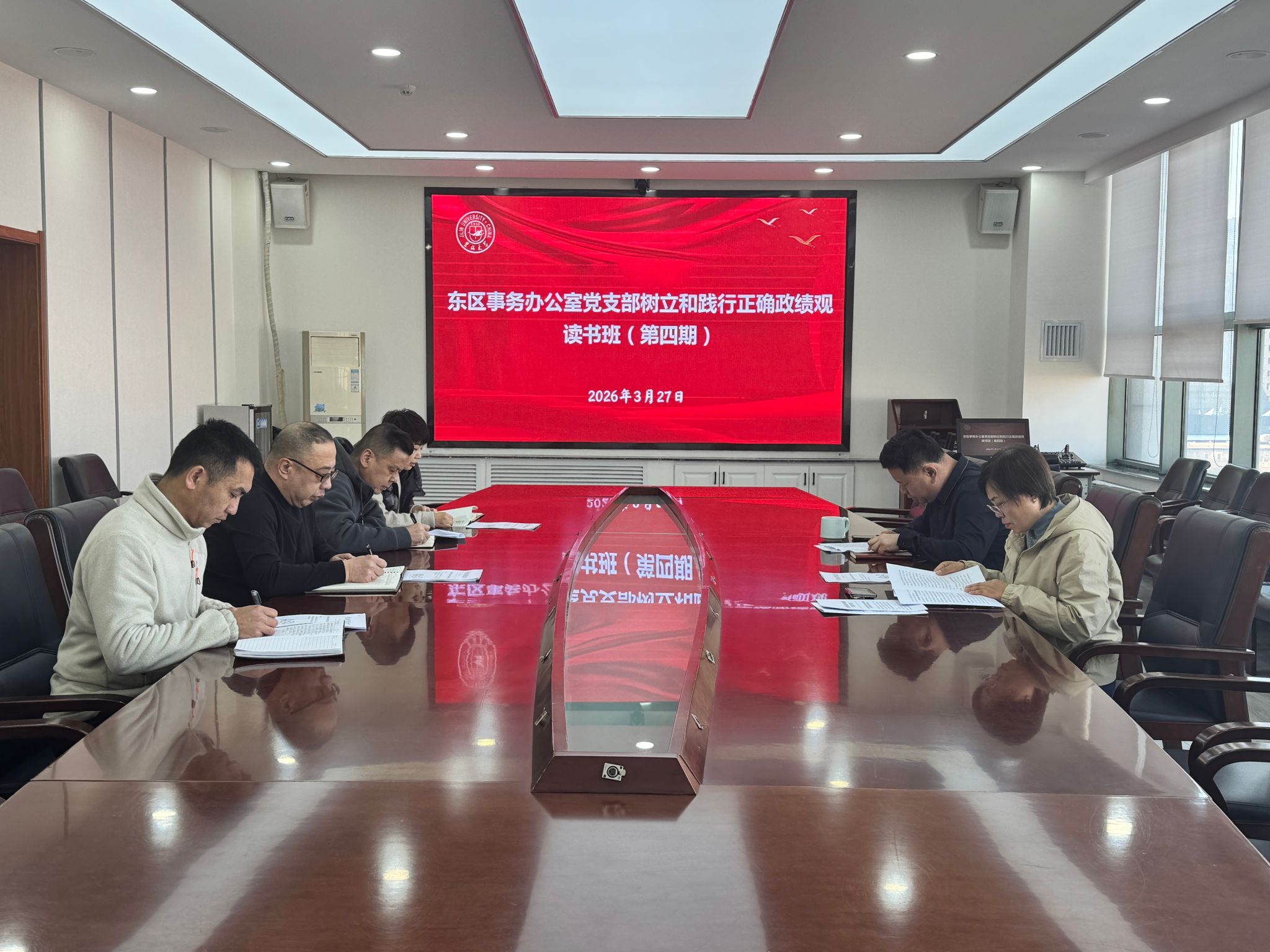 3月27日,东区事务办公室党支部组织召开树立和践行正确政绩观学习教育读书班(第四期),党支部书记张长亮主持会议,全体党员参加学习。
