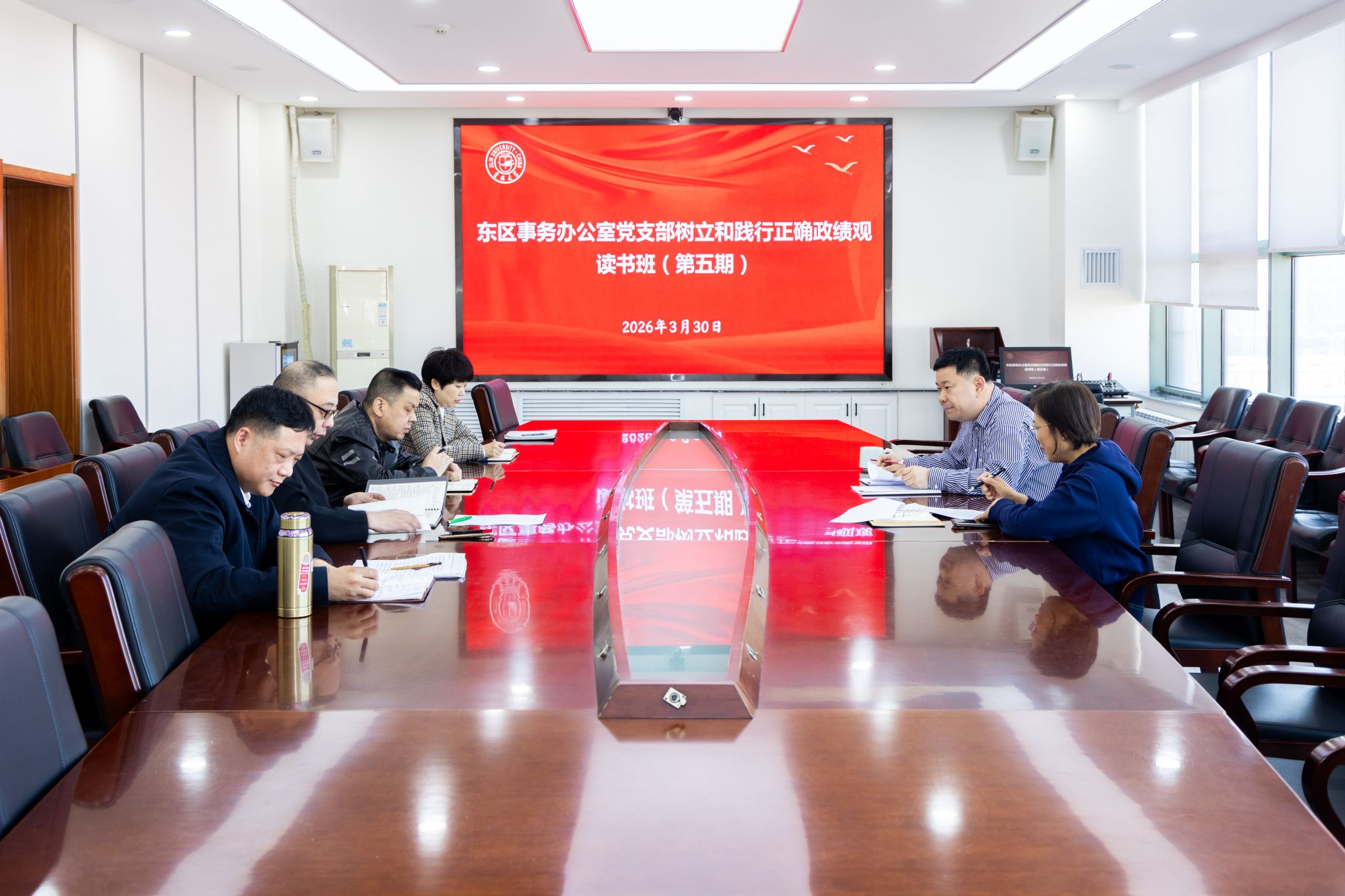 3月30日,东区事务办公室党支部召开树立和践行正确政绩观学习教育读书班(第五期)。党支部书记张长亮主持学习,支部全体党员参加。