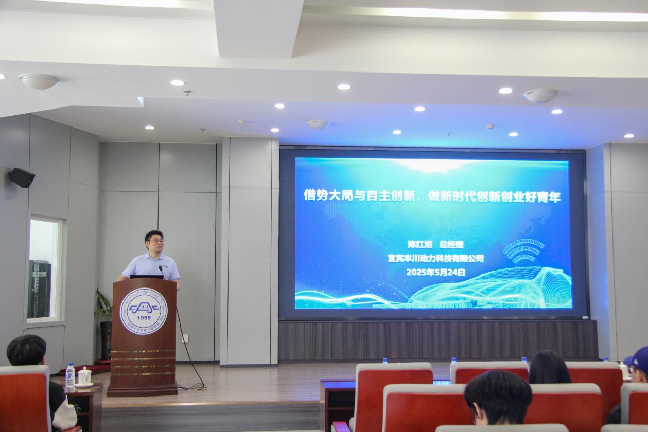本期活动邀请了我院优秀校友、宜宾丰川动力科技有限公司董事长、兼总经理陈红旭博士作为活动嘉宾,为同学们作了主题为“借势大局与自主创新,做新时代创新创业好青年”的报告。活动由副院长王军年主持,汽车工程学院高年级本科生和研究生共计240余人参加了本次活动。