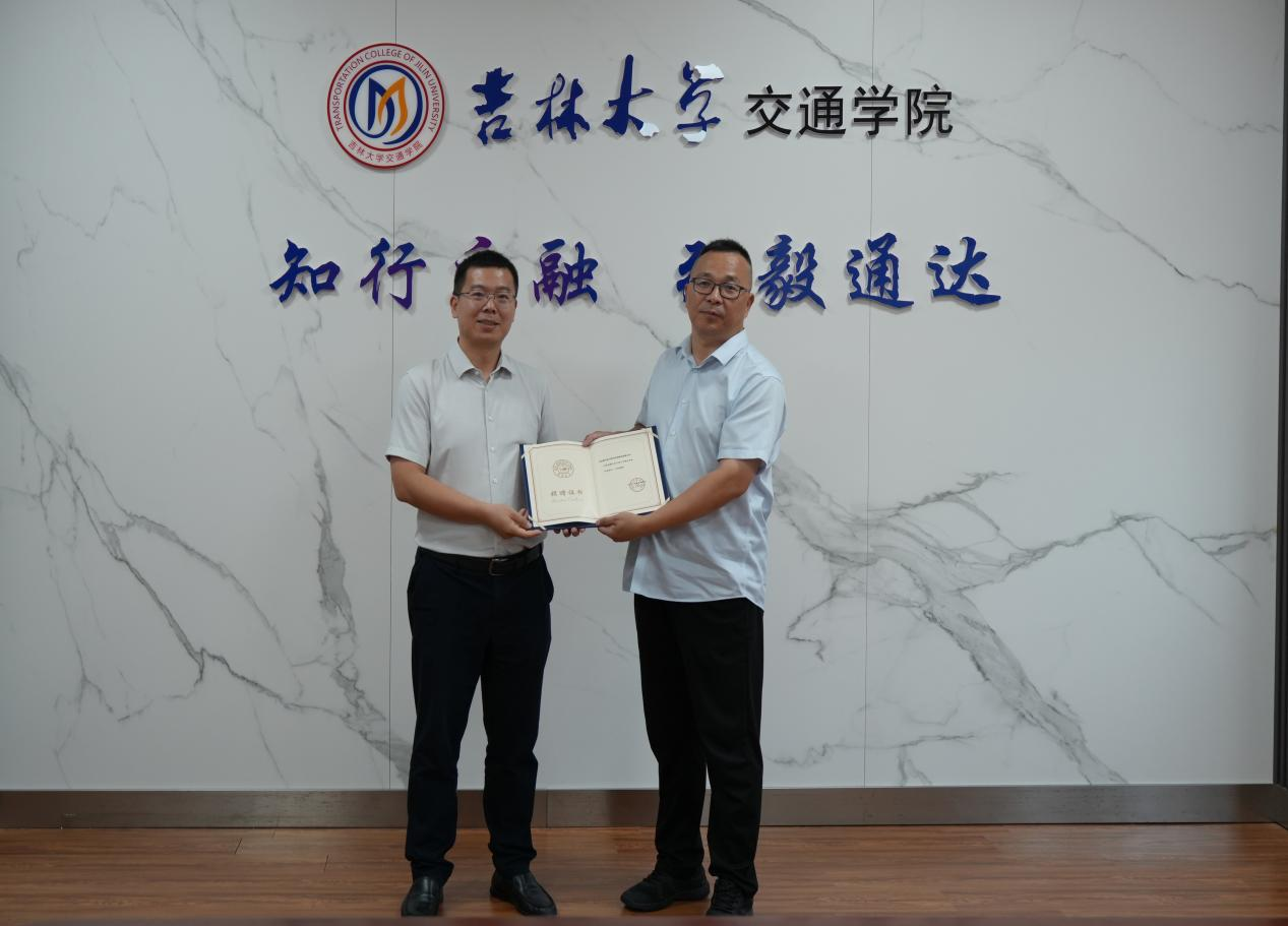 交通学院院长别一鸣向校友刘建设颁发了捐赠证书。之后刘建设校友与学院领导共同为“吉林大学号·谷神星一号(遥十五)”运载火箭模型揭幕。