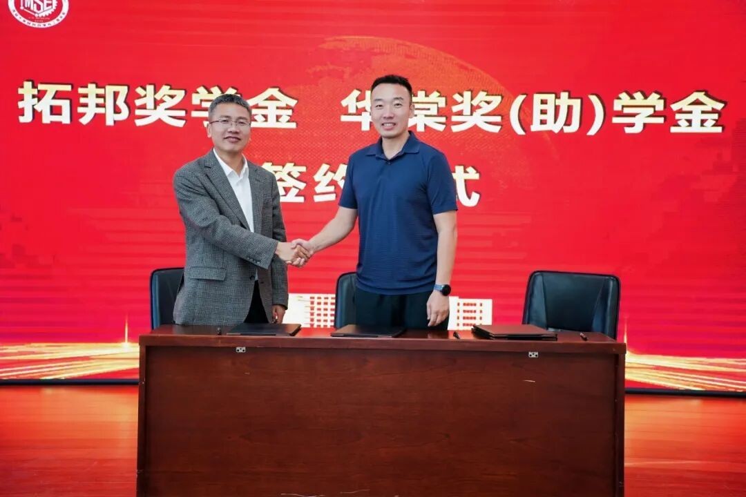 会上,吉林大学校友和基金会工作办公室主任康永刚与绍兴市铂兴科技有限公司、1997级校友王秀平签署华棠奖助学金协议。张立军与江苏拓邦华创科技有限公司董事长、2001级校友赵慧宇签署拓邦奖学金协议。