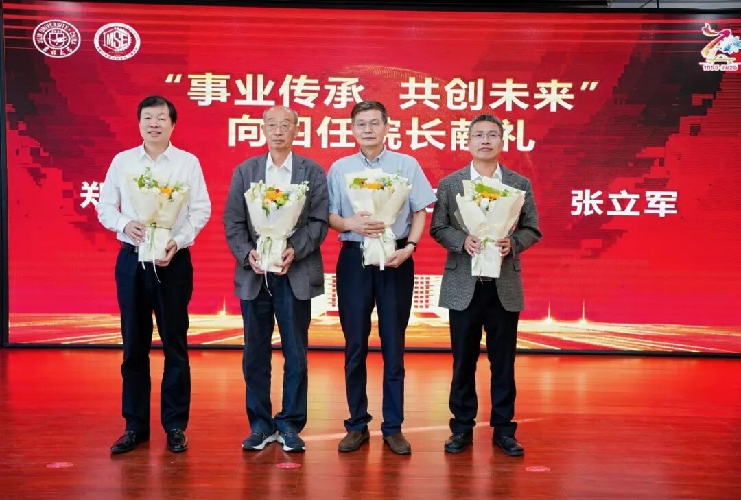 学院青年教师代表向合校以来四任院长:姜启川、郑伟涛、王慧远、张立军献花致敬。