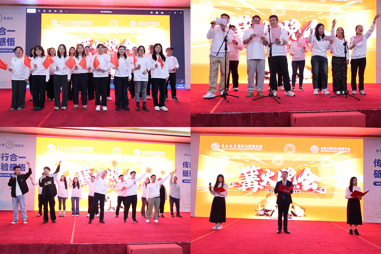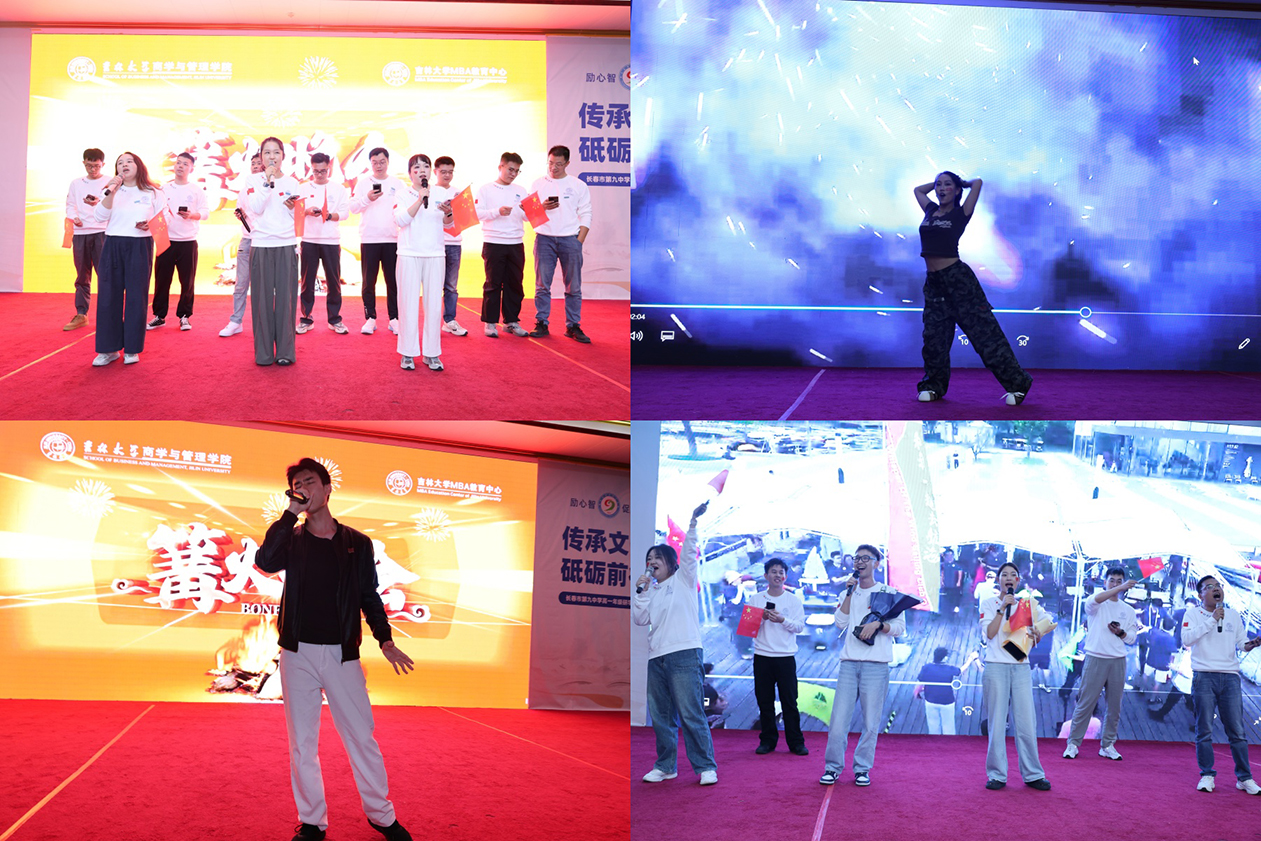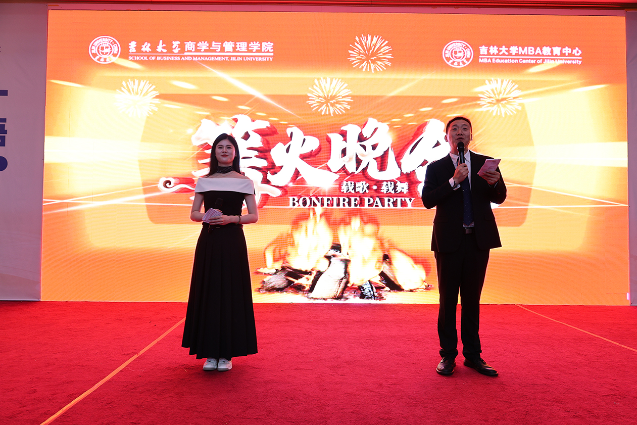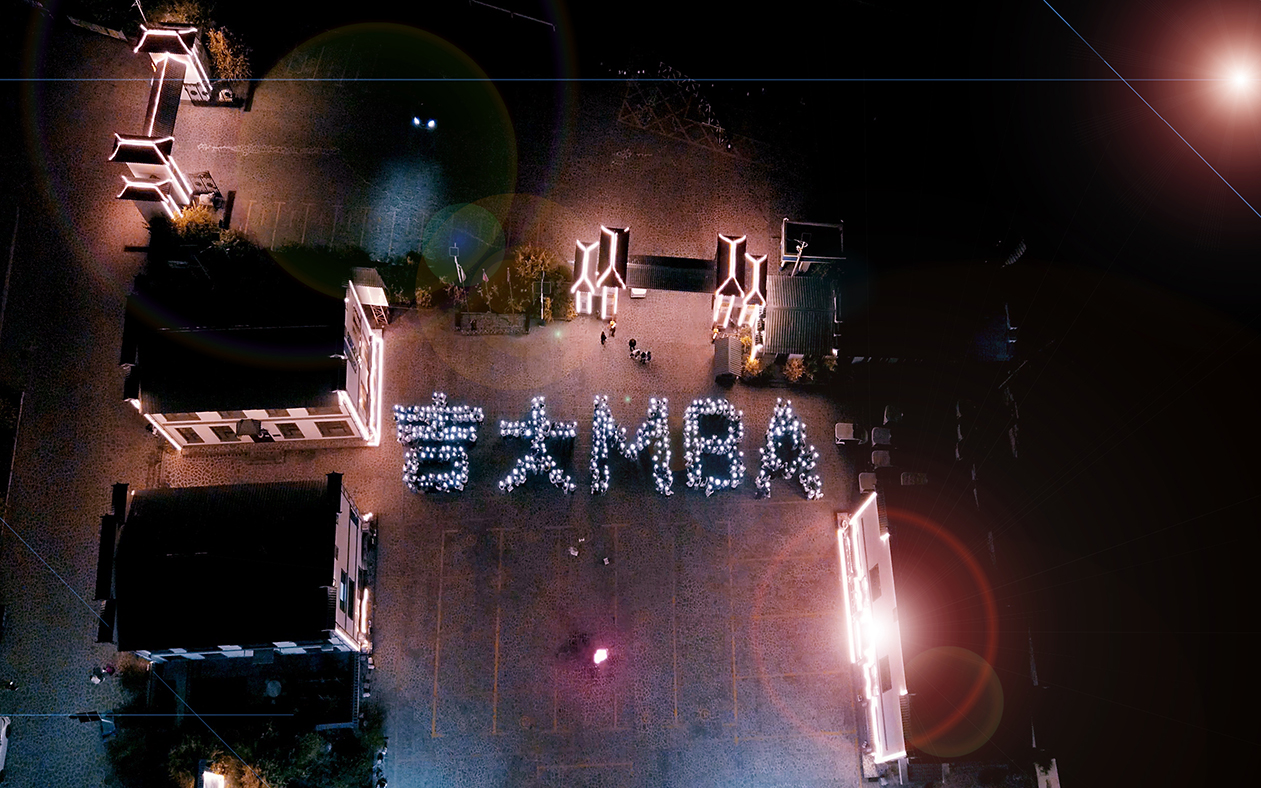 大家手牵着手,围绕这跃动的光源,载歌载舞,尽情游戏。欢声与乐曲交织,温暖与笑意相传,“吉大MBA”的字样在夜幕下熠熠生辉。烟花于此刻盛放,如写满祝愿的诗行绽放在天幕,与地上篝火相映成画,照亮璀璨的夜晚,也照亮每一位学子即将启程的路。
