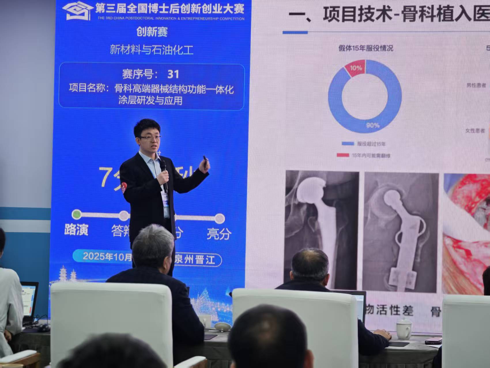10月28日,第三届全国博士后创新创业大赛总决赛在福建省泉州市圆满闭幕。大赛由人力资源社会保障部、福建省人民政府共同主办,主题为“博创引领四十载 智汇赋能向未来”。赛事设创新赛、创业赛、海外境外(“一带一路”)赛和揭榜领题赛四个组别,涵盖新一代信息技术、高端装备制造、新能源与节能环保、新材料与石油化工、生物医药与大健康等七大赛道。全国共有1700余个项目入围总决赛,最终产生63个金奖、133个银奖和198个铜奖。