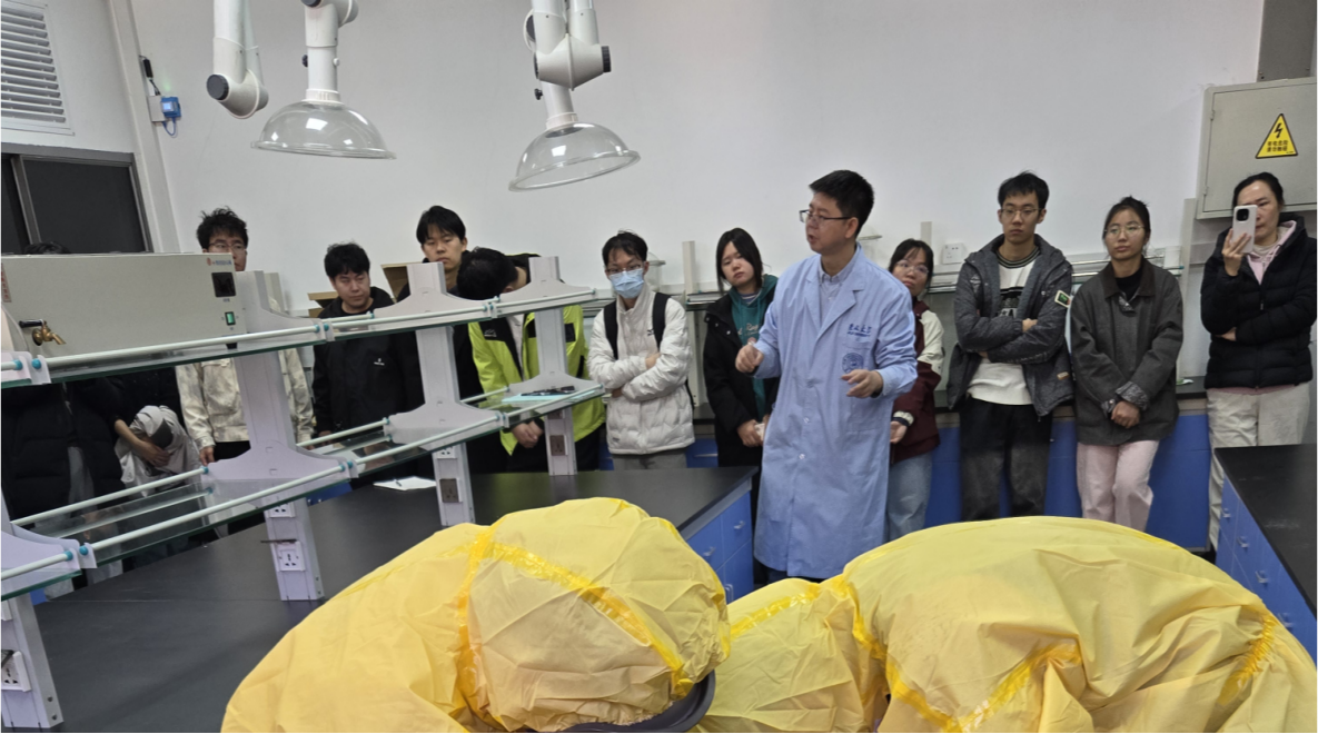 演练过程中,学校实验室管理处专家同步进行现场指导,围绕强腐蚀性化学品泄漏处置的核心要点、应急防护设施使用规范、个人防护装备正确穿戴等内容展开细致讲解,帮助参与师生厘清处置逻辑、规避操作误区;参与师生通过现场观摩、流程学习,进一步熟悉应急设备位置与基础使用方法,系统掌握强腐蚀性化学品泄漏的规范化处置流程,为后续实验安全提供知识与技能储备。