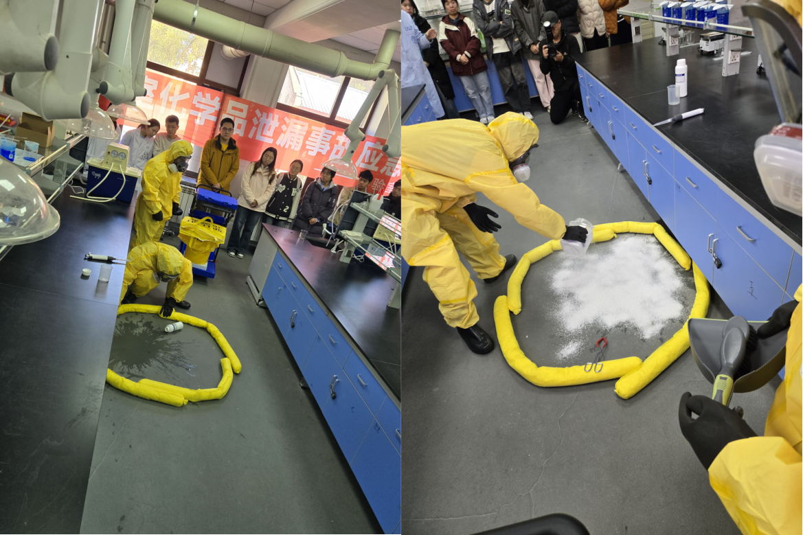 为进一步筑牢实验室安全防线,提升师生突发事件应急处置能力,响应吉林大学第四届实验室安全文化月“人人讲安全,个个会应急”的活动号召,近期材料科学与工程学院联合学校实验室管理处等部门,在南岭校区一校区149实验室开展实验室化学品泄漏事故应急演练,学院部分实验教学教师、科研团队及学生代表共同参与,以“实战化”模拟强化安全技能。