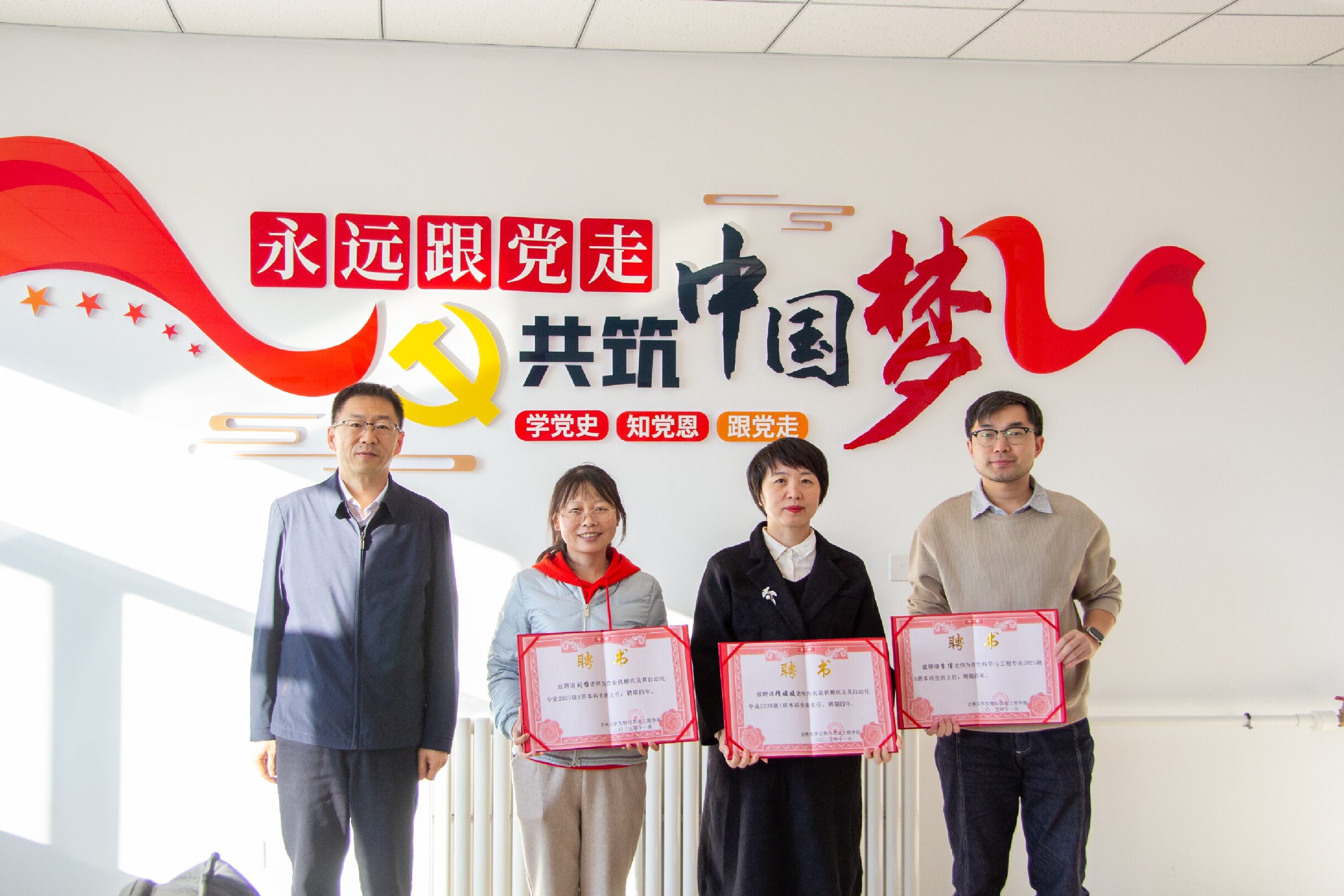 首先举行了2025级新生班主任聘任仪式,为新一届班主任代表颁发聘书,标志着班主任队伍的持续优化与充实。随后,学院优秀班主任代表,农业工程系隋媛媛老师、农林经济管理系张立芳老师和仿生科学与工程系李博老师围绕班级日常管理、思想引导、学风建设及心理健康关怀等主题,分享了日常班主任工作中的实践经验,重点介绍了如何通过日常谈心谈话、开展主题班会、组织特色活动等方式,增强班级凝聚力与学生归属感。学生代表陈治硕、邵娜晰结合自身成长经历,分享了班主任在学业规划、能力提升和思想成长中的指导作用,并就如何加强师生沟通、优化指导方式提出建议。