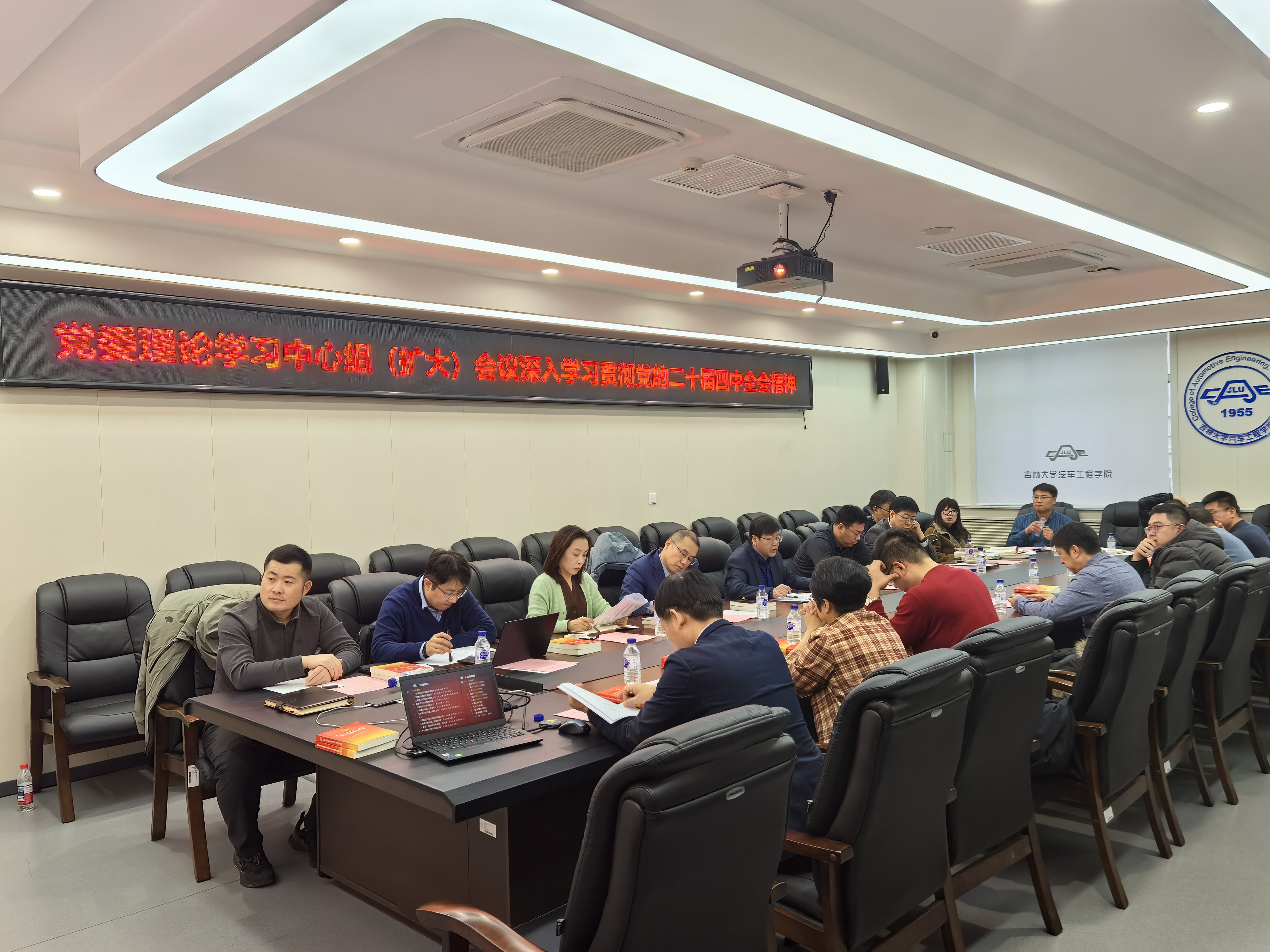 12月8日,汽车工程学院在汽车大楼212会议室召开党委理论学习中心组(扩大)会议,专题学习贯彻党的二十届四中全会精神。学院党委理论中心组成员、系(所)主要负责人、教工党支部书记参加会议。会议由学院党委书记黄忠华主持。