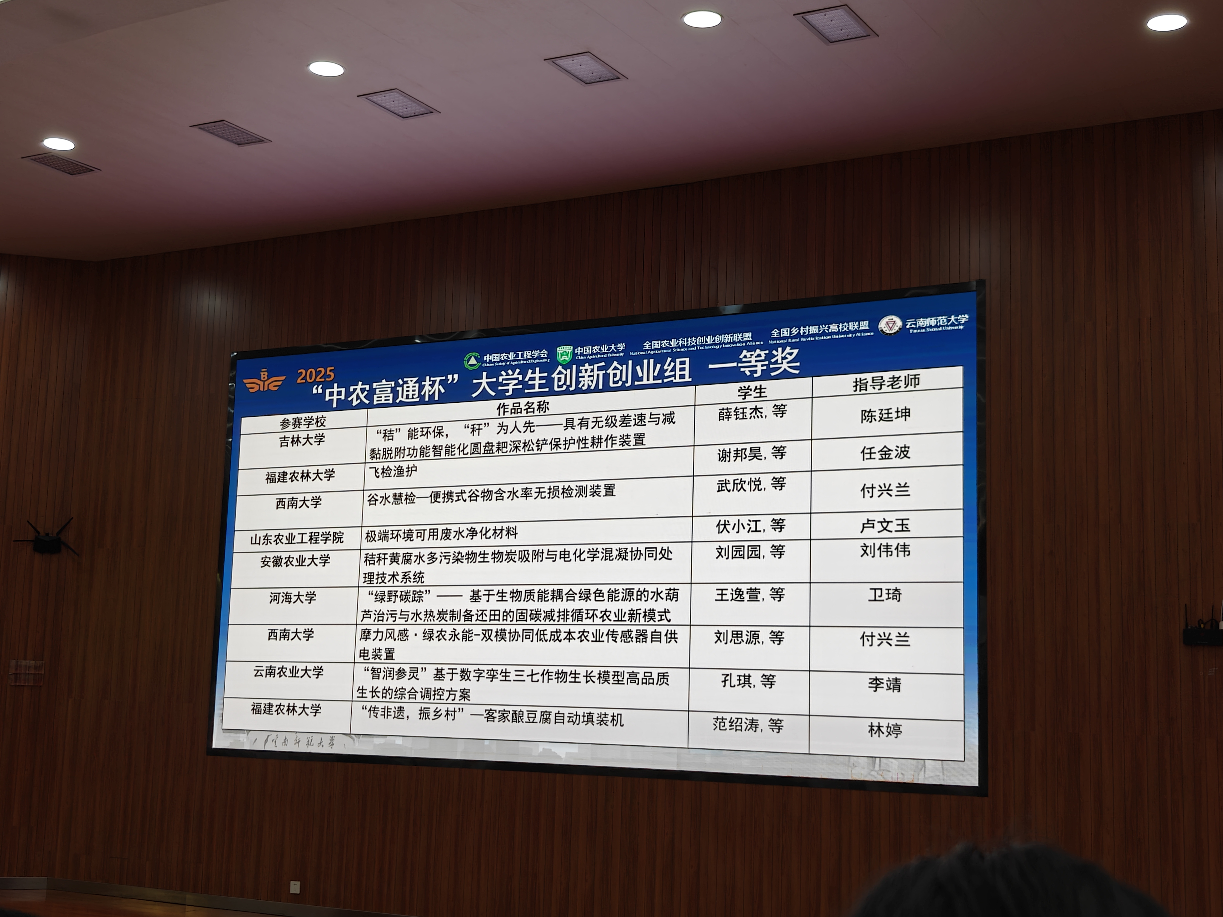 第十二届全国大学生乡村振兴创新创业大赛暨农业建筑环境与能源工程相关专业双创大赛近日在云南师范大学圆满收官。生物与农业工程学院主动对接赛事要求,全程统筹校赛组织、项目打磨与备赛指导等核心工作,推选的2个优质项目在全国总决赛取得佳绩,充分彰显了学院创新育人的丰硕成果。
