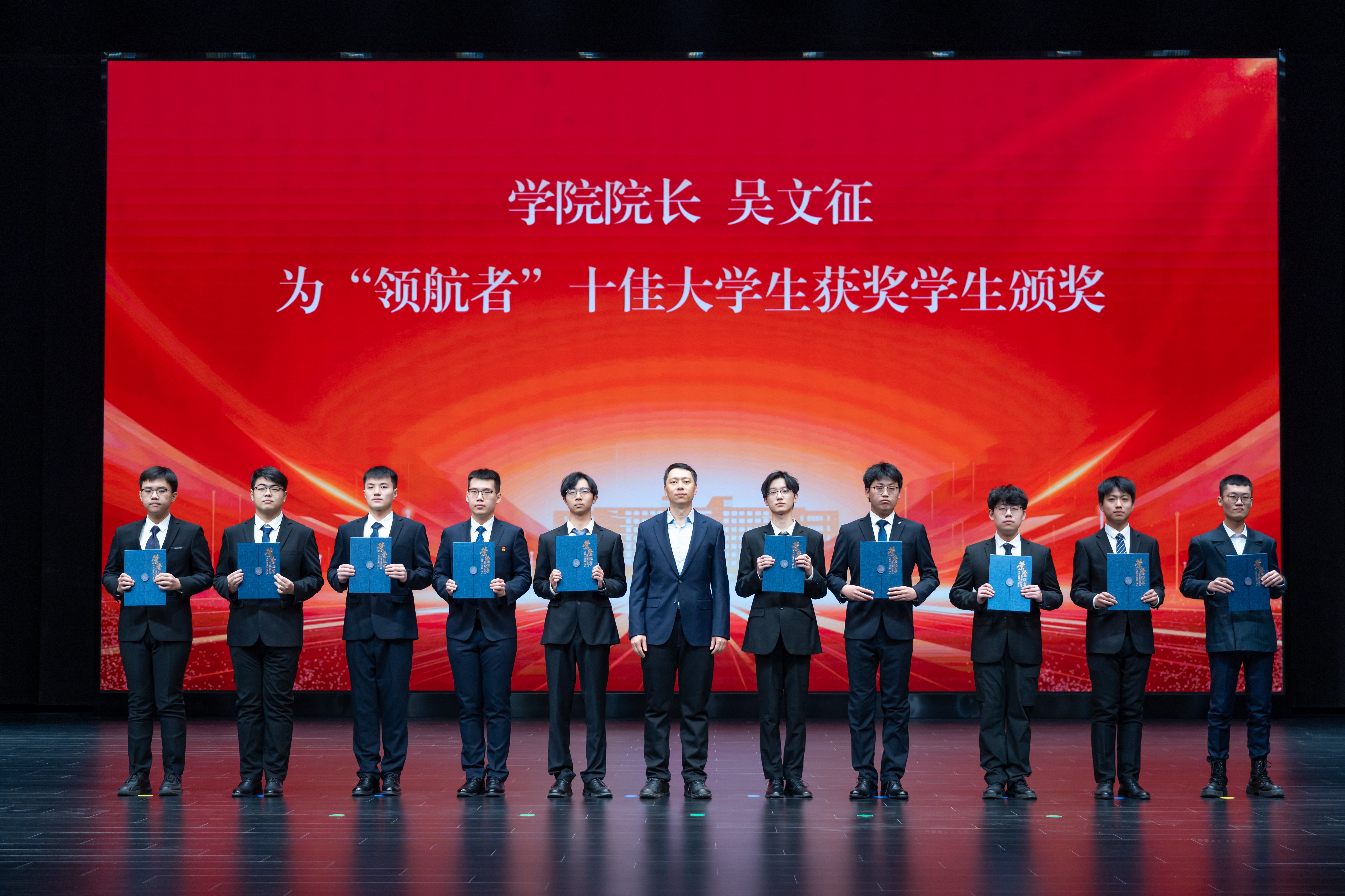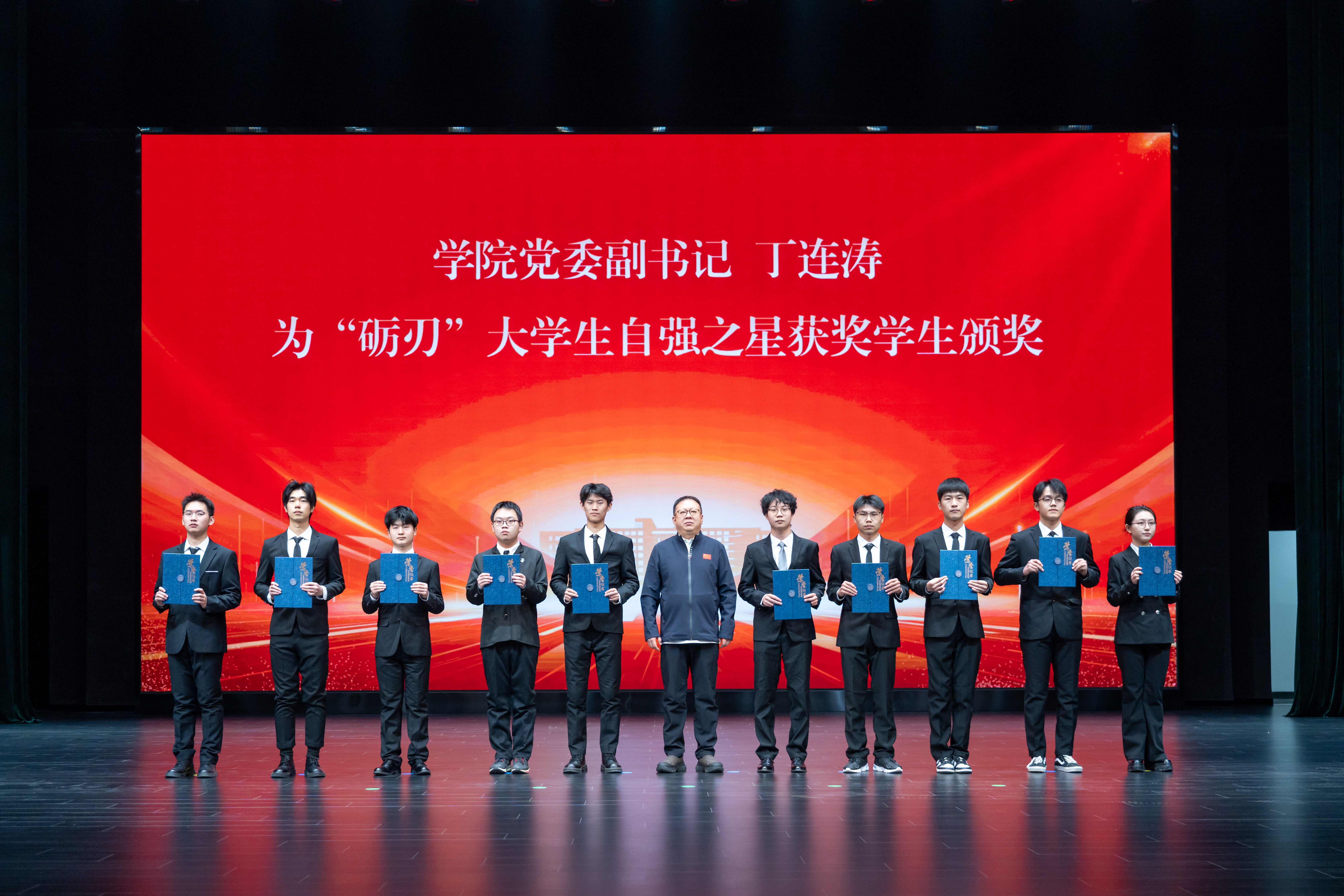 大会对2025年度本科生优秀学生和集体进行了表彰。学院院长吴文征为“领航者”十佳大学生获奖学生颁奖。学院党委副书记丁连涛为“砺刃”大学生自强之星获奖学生颁奖。
