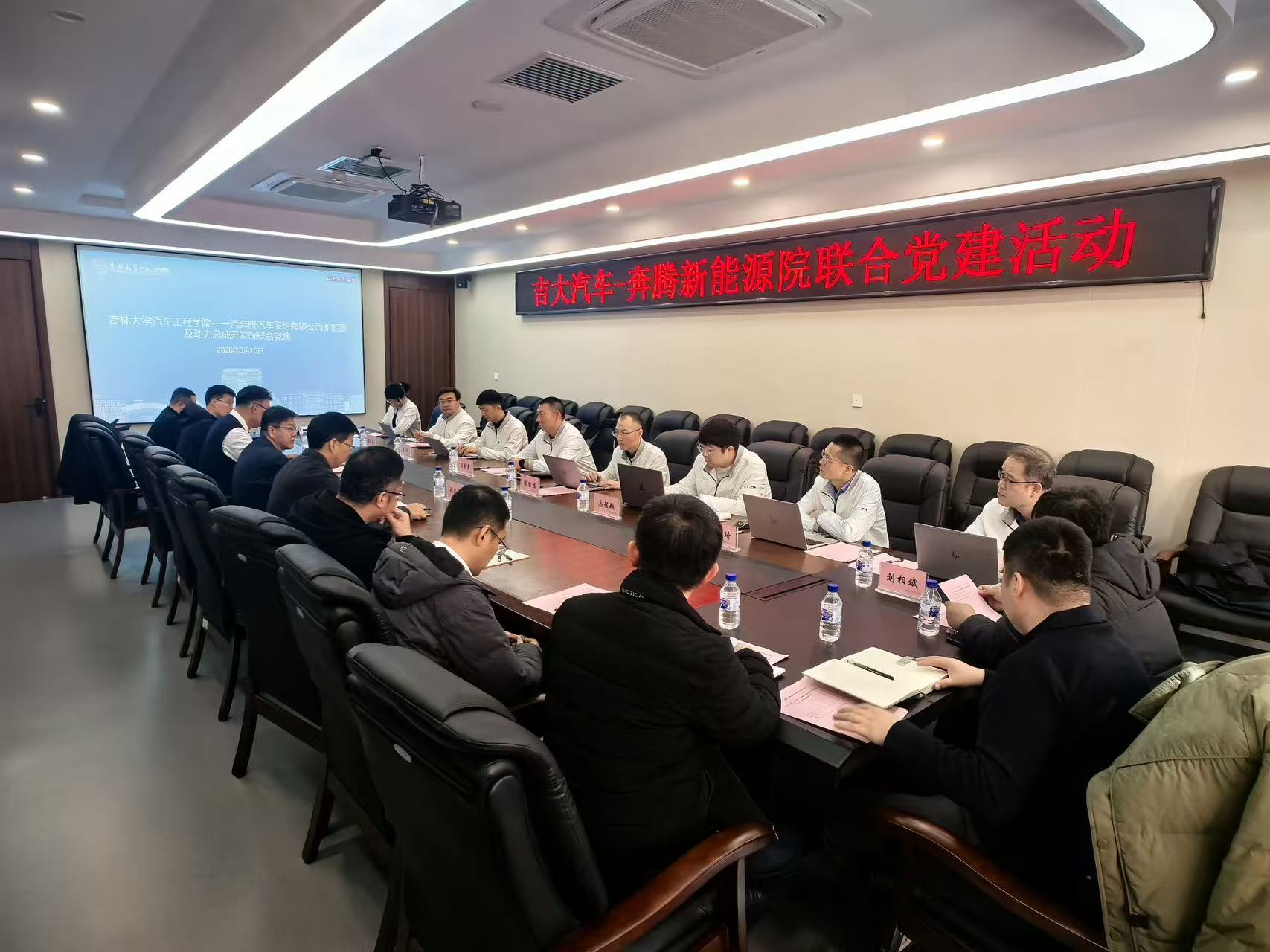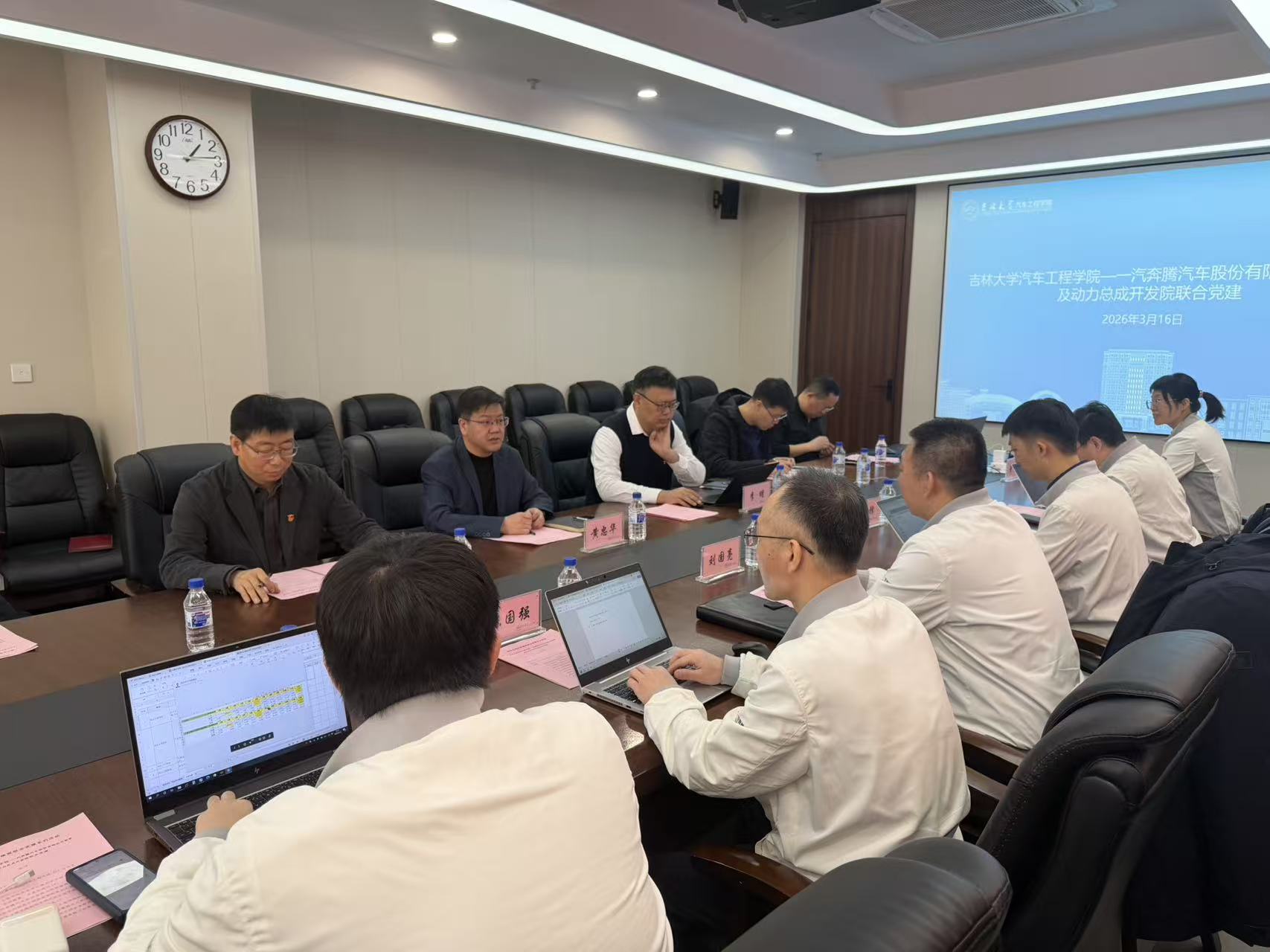为深入学习贯彻党的二十大精神,践行正确政绩观,推动党建工作与事业发展深度融合,2026年3月16日下午,吉林大学汽车工程学院与一汽奔腾汽车股份有限公司新能源及动力总成开发院联合举办的“践行正确政绩观”主题党建活动在吉林大学南岭校区汽车工程大楼212会议室顺利举行。双方围绕人才培养、科研合作、实习实践基地建设等议题展开深入交流,共谋全方位合作新篇章。