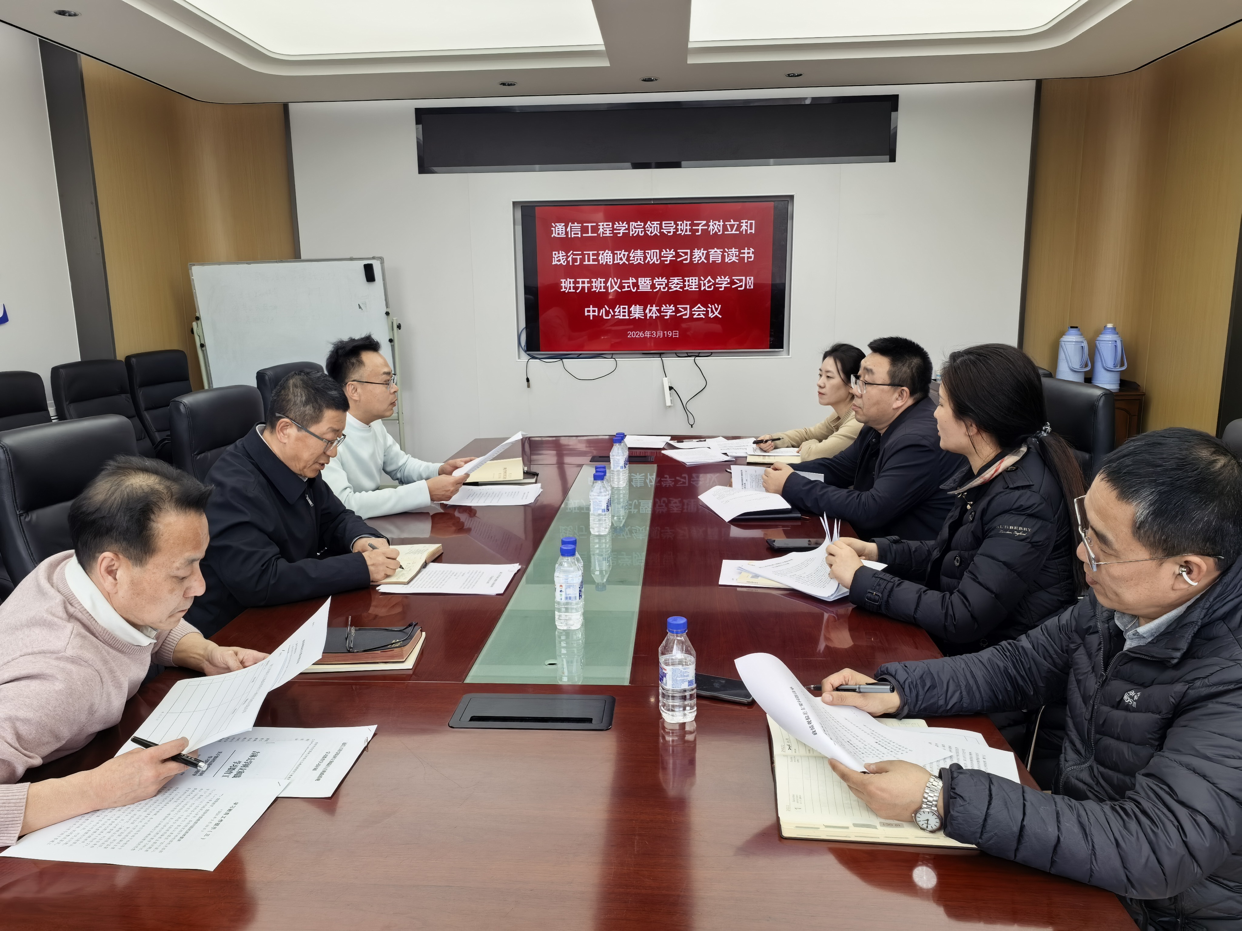 2026年3月19日,通信工程学院在南湖校区办公楼313会议室召开领导班子树立和践行正确政绩观学习教育读书班开班仪式暨党委理论学习中心组集体学习会议,聚焦树立和践行正确政绩观、学习贯彻全国两会精神开展集中研学与交流研讨。会议由学院党委书记董宏志主持,学院领导班子成员参加会议。