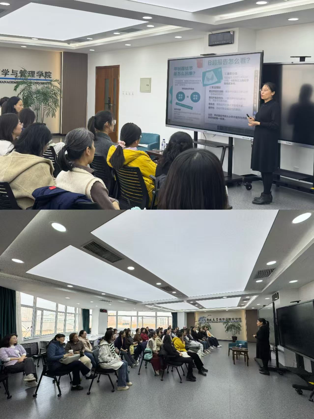 春意渐浓,万物复苏。为切实守护教职工身心健康,3月25日下午,商学与管理学院工会、妇委会在东荣大厦A506室举办“2026年三八妇女节系列活动之春季中医养生及内分泌调护”健康讲座,特邀长春中医药大学附属医院内分泌代谢病科副主任、主任医师、国家青年岐黄学者米佳教授担任主讲。