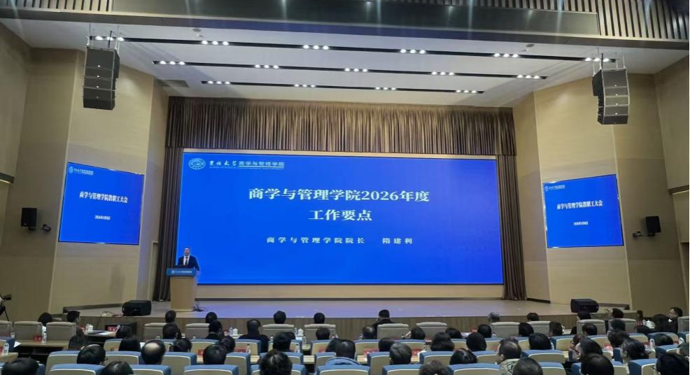 会议传达了校党委常委、常务副校长蔡立东对学院发展的殷切期许:站在“十五五”开局的新起点,希望全院师生继续同心同德、奋楫扬帆,牢固树立高质量特色发展理念,牢牢把握人才培养与产业需求、科学研究与地方经济、学科建设与自主知识体系三个相结合,持续完善竞争机制与法治基础,深耕特色赛道、锻造核心优势,全力建设中国特色、世界一流的商管学院,在服务教育强国、学校“双一流”建设和区域高质量发展中展现更大担当、作出更大贡献,共同书写商管学院更加辉煌的新篇章。