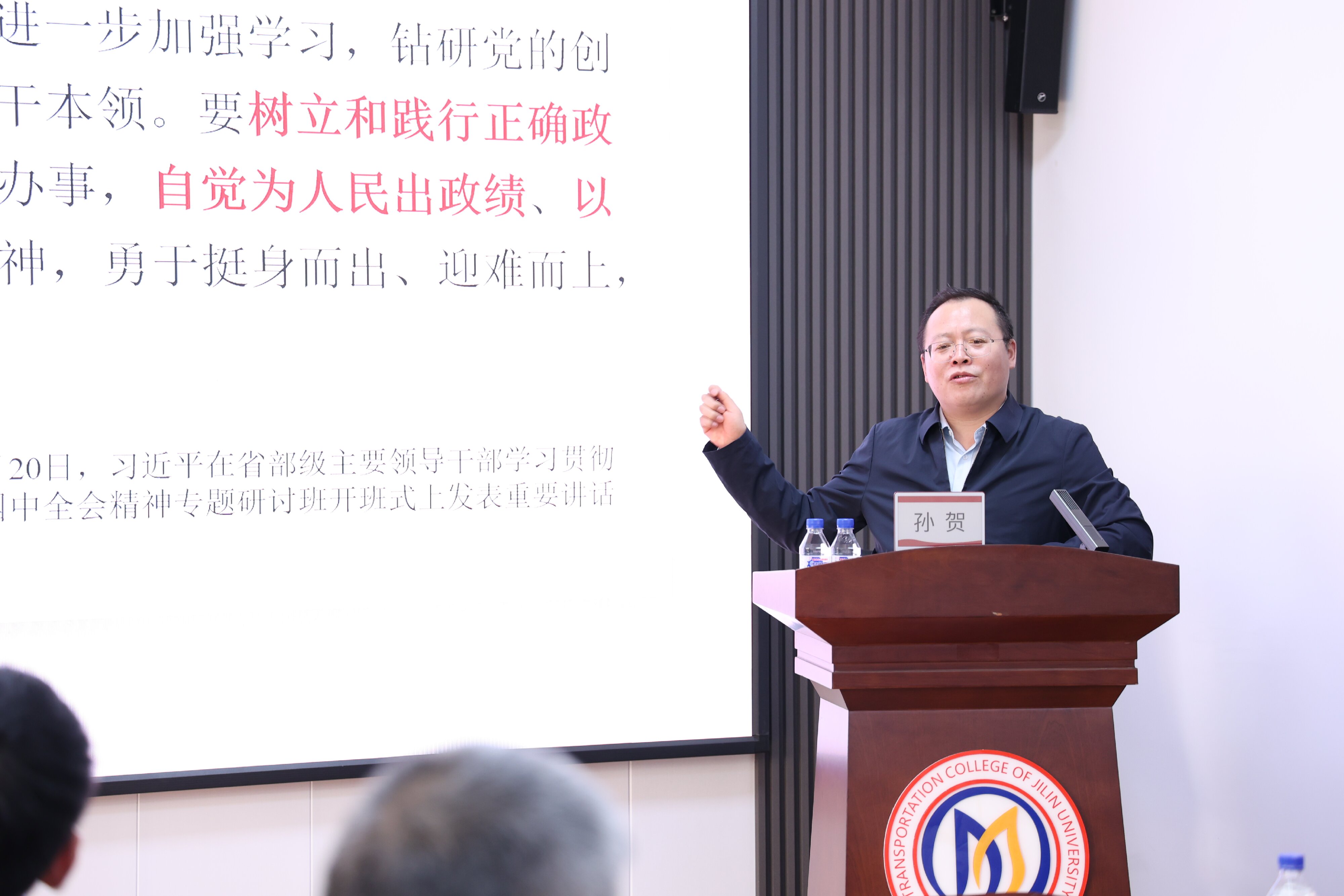 为深入学习贯彻习近平总书记关于树立和践行正确政绩观的重要论述,推动党员干部牢记初心使命、强化责任担当,以正确政绩观引领学院事业高质量发展,2026年4月8日,材料科学与工程学院、交通学院、生物与农业工程学院联合举办树立和践行正确政绩观学习教育读书班专题辅导报告会。特别邀请吉林大学马克思主义学院教授孙贺作题为《政绩观问题是一个根本性问题》的专题辅导。