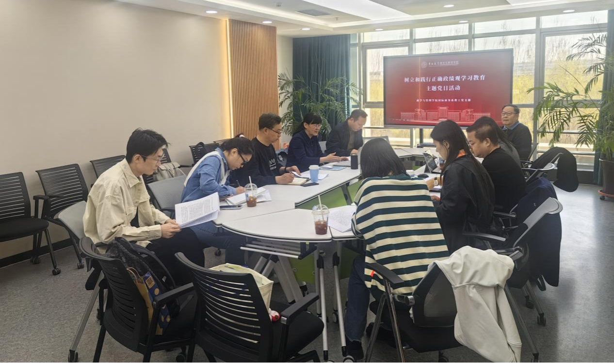 为深入推进树立和践行正确政绩观学习教育,在对标先进中见贤思齐,在交流学习中深化认识,在知行合一中锤炼党性,4月15日下午,商学与管理学院国际商务系教工党支部开展学习教育主题党日活动,集体学习了学习教育相关内容并开展交流研讨。会议由国际商务系教工党支部书记杨红同志主持,科协秘书处办公室主任、学院党建联络员王立锋同志到会指导。