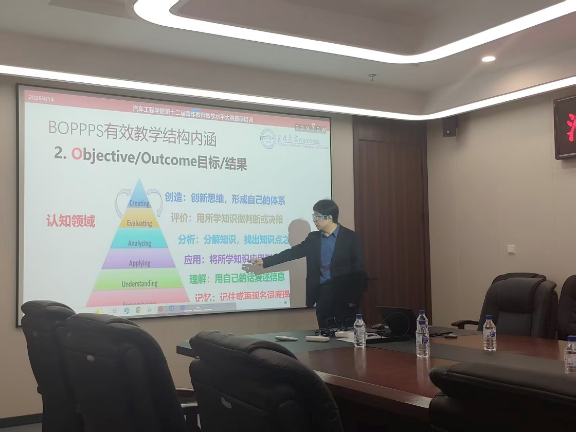 为做好吉林大学第十二届青年教师教学水平大赛赛前准备工作,落实“以赛促教、赛训结合”的参赛理念,切实提升学院青年教师教学能力与参赛水平,近期,汽车工程学院统筹部署,在广泛动员基础上为参赛报名青年教师,系统组织了赛前培训、示范与试讲辅导系列活动,全力支持青年教师备赛参赛,锤炼教学技法、提高教学能力。